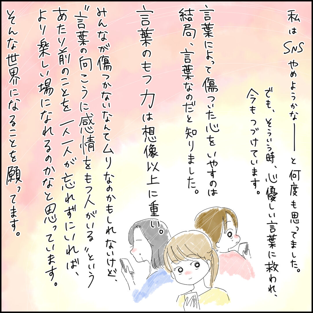私自身すごく支えられた歌だったので、どうしてもブログにも残したいと思っていました。