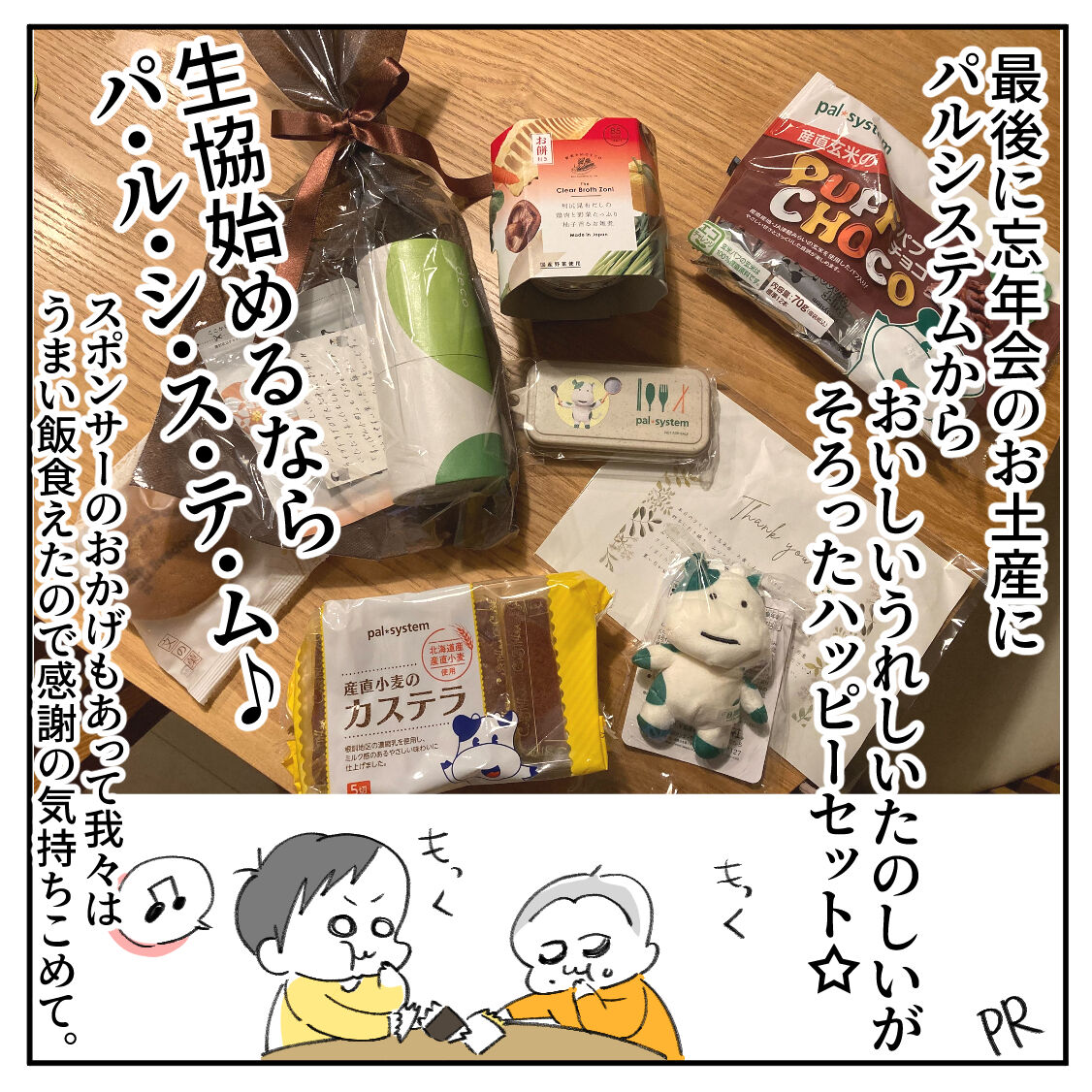 余談ですがお土産でもらったパルシステムのカステラ、息子らから大好評でした。